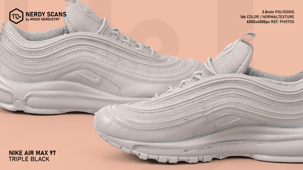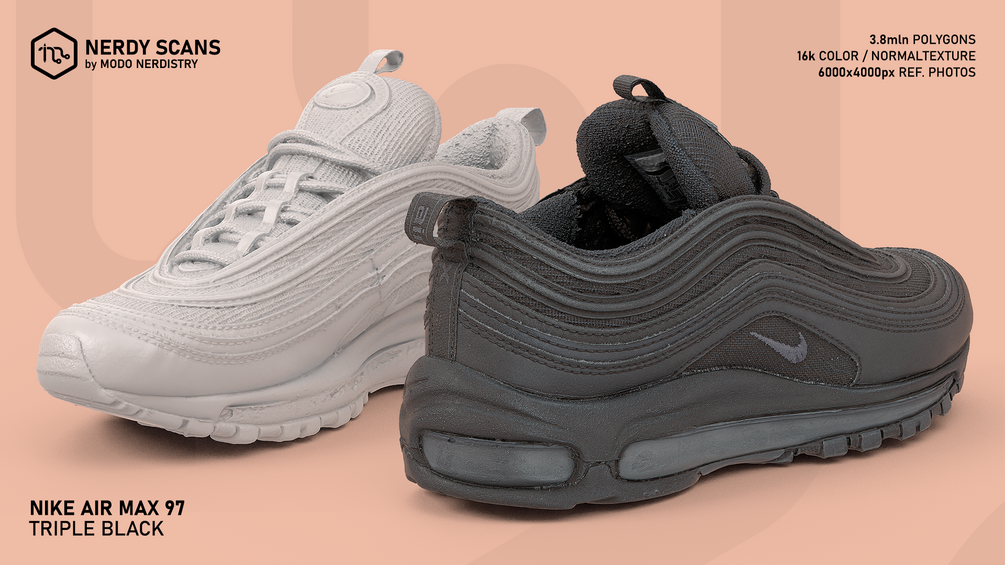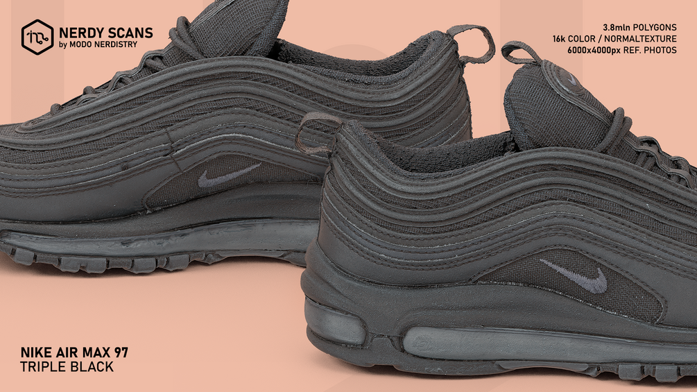 Nerdy Scans: Nike Air Max 97 Triple Black, 3,8mln polygons + 16k Color / Normal Texture